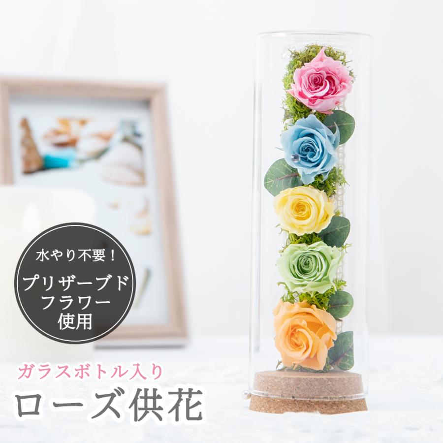 プリザーブドフラワー 仏花 ミニ ボトルフラワー バラ お供え 供養 花 仏壇 お悔み ガラスボトル カラフル お手入れ簡単 臭わない 水やり不要 おしゃれ かわいい キングセレクション 通販 Paypayモール